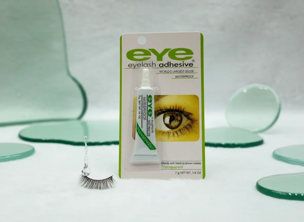 Waterproof, transparent eyelash adhesive for a seamless and long-lasting hold.